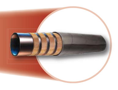 Рукав выcокого давления 4SP DIN EN 856 Внутренний слой: маслостойкая синтетическая резина Усиление: 4 слоя стальной проволочной спирали Наружный слой: синтетическая резина, стойкая к истиранию Рабочая температура: от -40°С до +100°С (+125°С макс.)